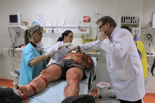 As vítimas-atores são alunos da Universidade Federal de Ciências da Saúde de Porto Alegre (UFCSPA). O simulado transcorreu com sucesso, sem interrupção no atendimento real da Emergência.
