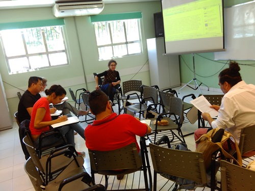 Foram realizadas 20 oficinas, sendo a metade oferecida para o público interno do Grupo Hospitalar Conceição (GHC) e a outra metade, para alunos de mestrado em convênio com uma universidade pública. A média de participantes nos encontros foi de 10 e 30, respectivamente. A metodologia de trabalho foi constituída pela provocação de escrita a partir de algum artefato cultural (imagem, vídeo, fragmento de texto, conto, poesia, música etc.), articulando com situações do trabalho vividas no GHC ou com os projetos de pesquisa em andamento.