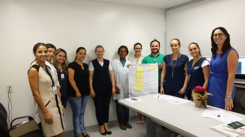 Dando sequência às atividades do projeto, a metodologia de trabalho foi apresentada aos profissionais e gestores da unidade 3I1- Unidade de Oncologia e Hematologia, a qual foi escolhida como unidade piloto do HNSC para a aplicação de ciclos de melhoria. Essa escolha se deu devido ao engajamento e colaboração da equipe multiprofissional em participar do projeto e por ser uma unidade que conta com farmacêutico clínico.